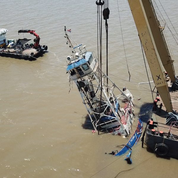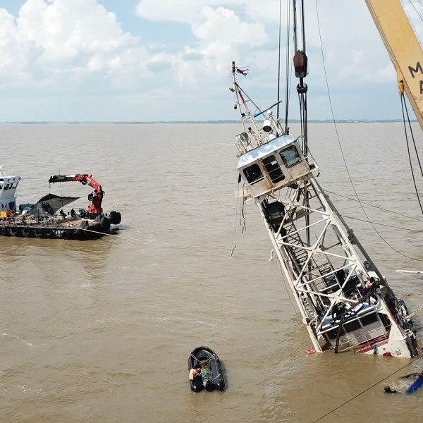 Hundido en proximidades del km. 62,300 del Canal Martín García, Colonia, ROU.