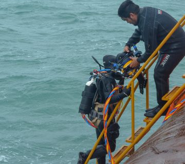 Limpieza de rejas y recorrido de instrumental en Obra de Toma – Represa Hidroeléctrica Futaleufu Buceo, Obras
