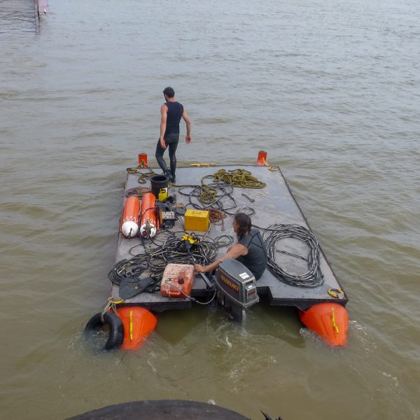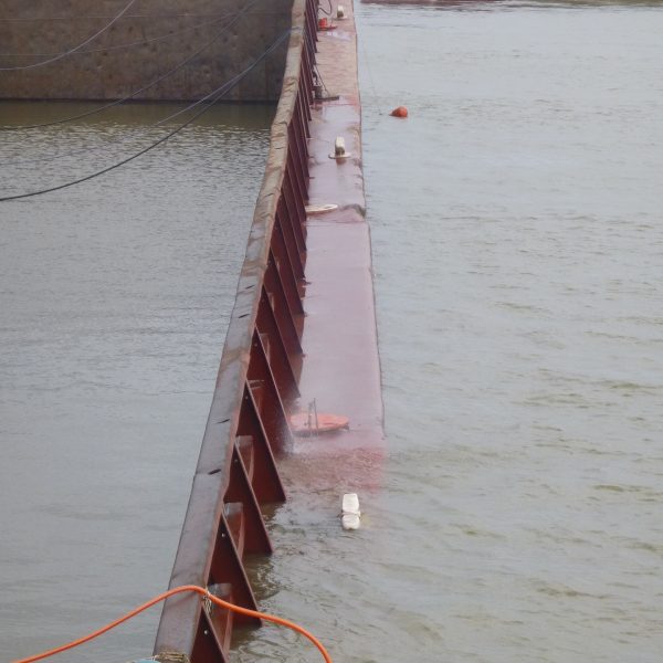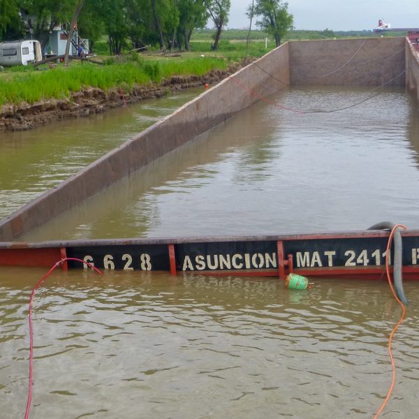 Reflotamiento del casco y rescate de 2,500 tons. de mineral de hierro, realizado en el Riacho Martín Chico, San Nicolás, Prov. De Buenos Aires.