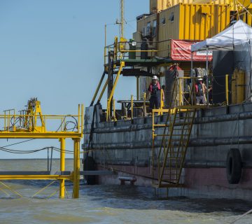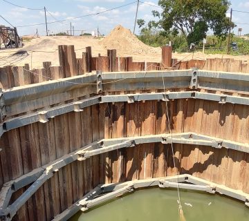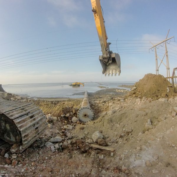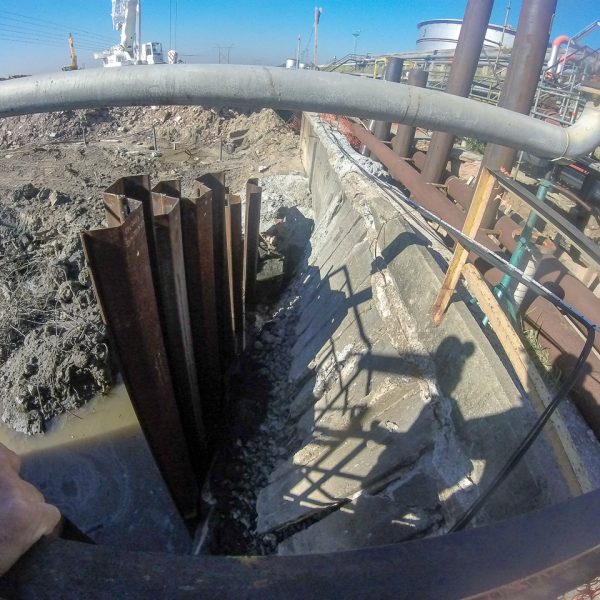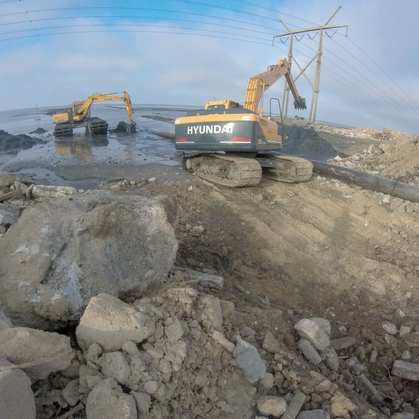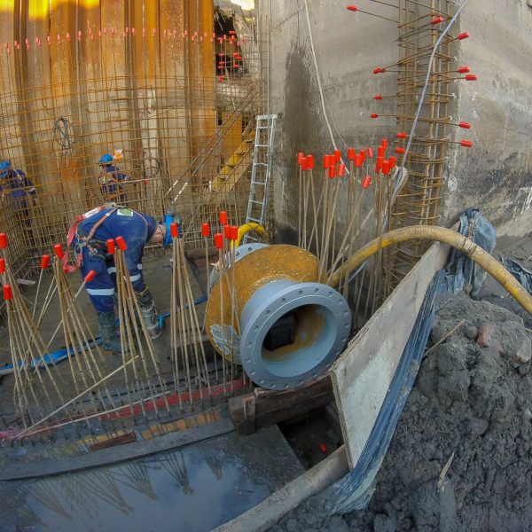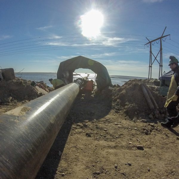 Desarrollo de ingeniería y ejecución de Obra nueva toma de agua de río instalada sobre aguas del Rio de LA PLATA. Tendido en trinchera de 1,300 mts. de cañería diámetro 20” y construcción de caseta de válvulas/filtros deprimida a -6 mts.