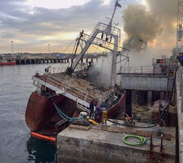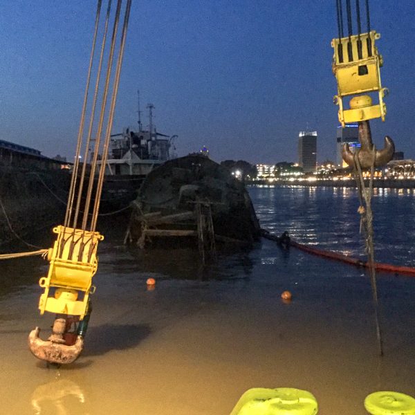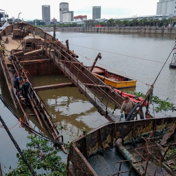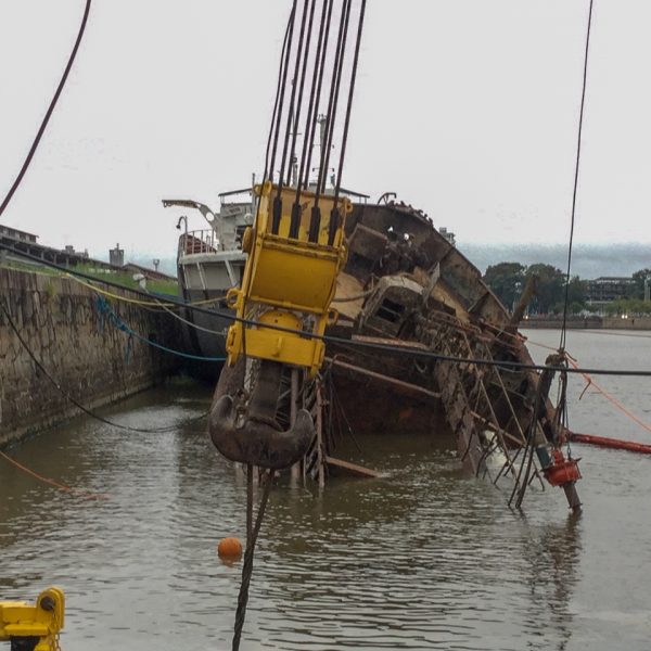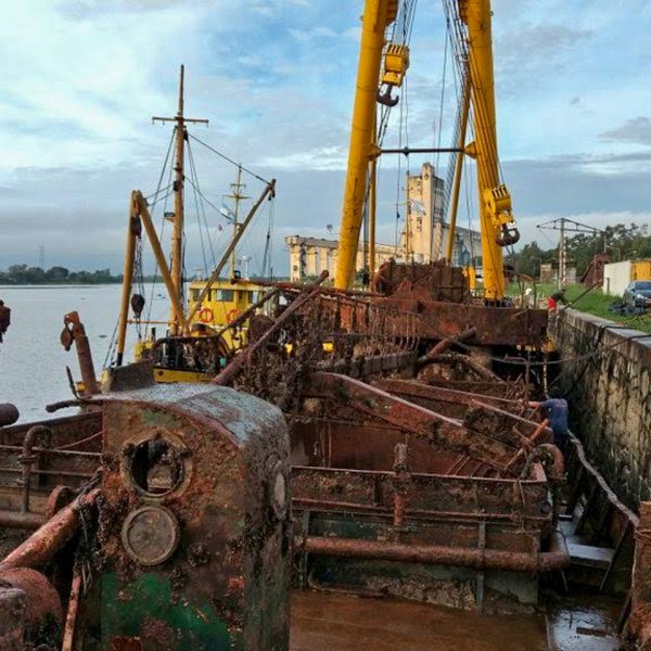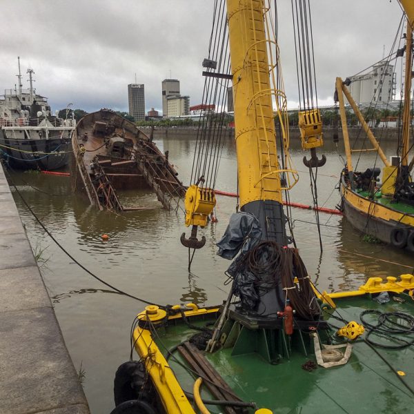 Hundido en el interior del puerto de Santa Fé. Custodia y alistamiento para su posible puesta en secos y disposición.